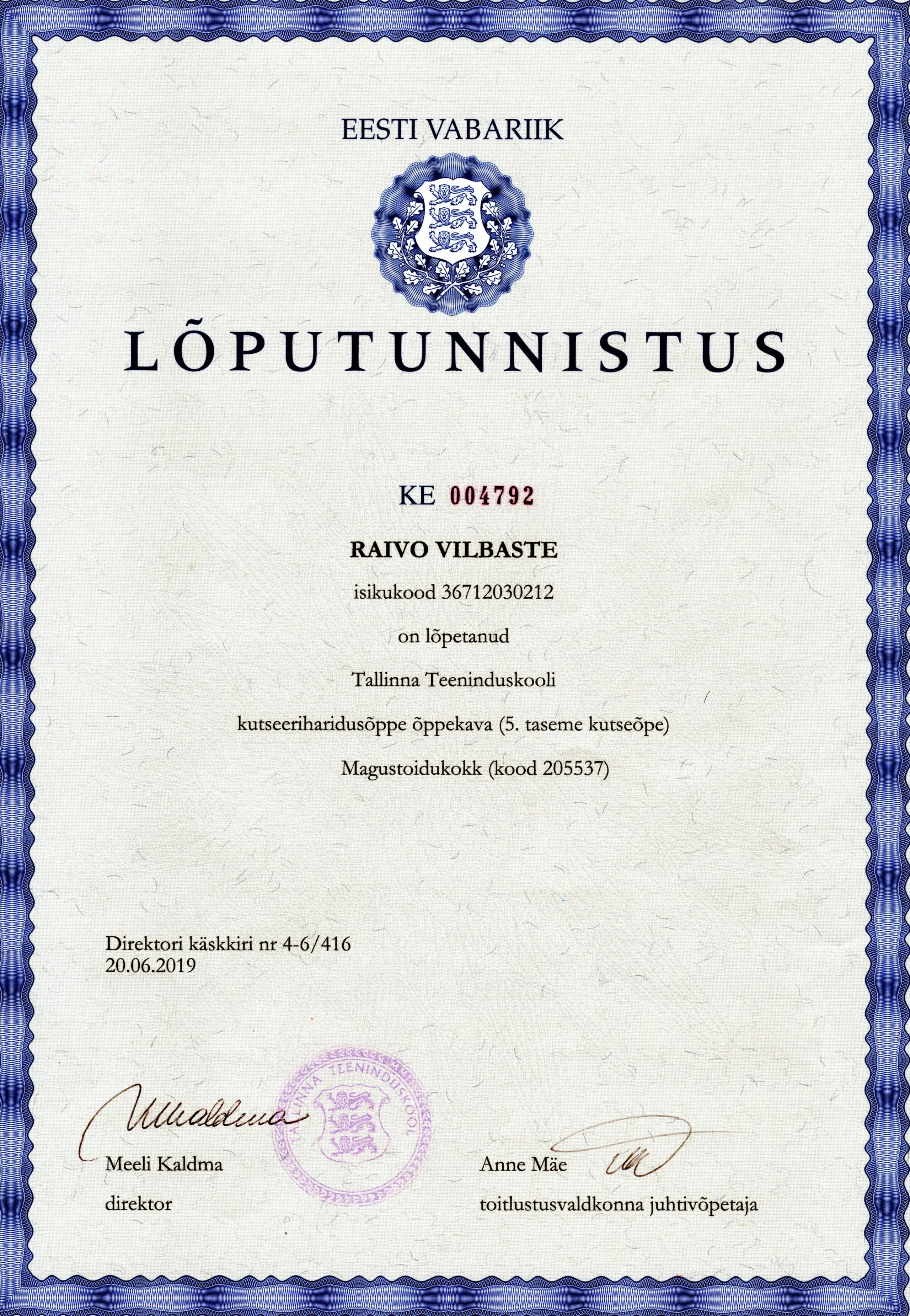 iCake Stuudio juhataja Raivo on lõpetanud 2019 aastal Tallinna Teeninduskooli Magustoidukoka erialal (5. taseme kutseõpe)