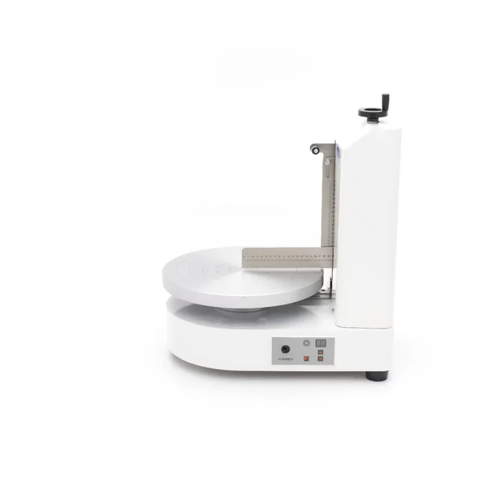 Automaatne tordi/koogi kreemi silumise masin võimaldab igaühel kaunistada nagu professionaal. Pole enam kõveraid külgi ega ebaühtlast pealispinda – tänu sellele masinale on teie tort/kook kõikjalt täiesti sile.