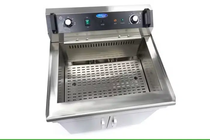 Roostevabast terasest fritüür sobib friikartulite ja muude suupistete fritüürimiseks. Nõu mahutab 35 liitrit õli kuni 4,1 kg friikartulite jaoks. Elektrilisel fritüüril on aluskapp, õli äravoolukraan, eemaldatav kaas ja neli kummist jalga, mis muudavad selle väga stabiilseks. Reguleeritava termostaadi abil saate määrata õige temperatuuri krõbedate friikartulite ja suupistete valmistamiseks. Temperatuur on reguleeritav vahemikus 50° kuni 200°C.