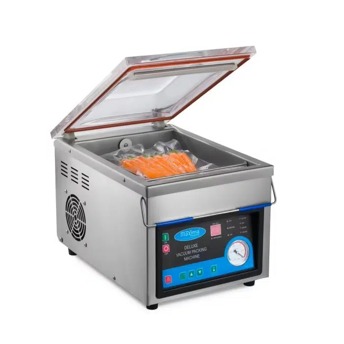 Professionaalse täisautomaatse kamber vaakumpakendajaga saate vaid hetkega pakendada erinevaid toiduaineid, et toit säiliks kauem värske või külmutada. Pakendajal on roostevabast terasest korpus ja kamber, digitaalne juhtpaneel, tugev kaarega kaas, ohutuslüliti ja neli kummist jalga. Tihendusriba 26 x 0,8 cm millele sobivad vaakumkotid maksimaalse suurusega 25 x 40 cm.