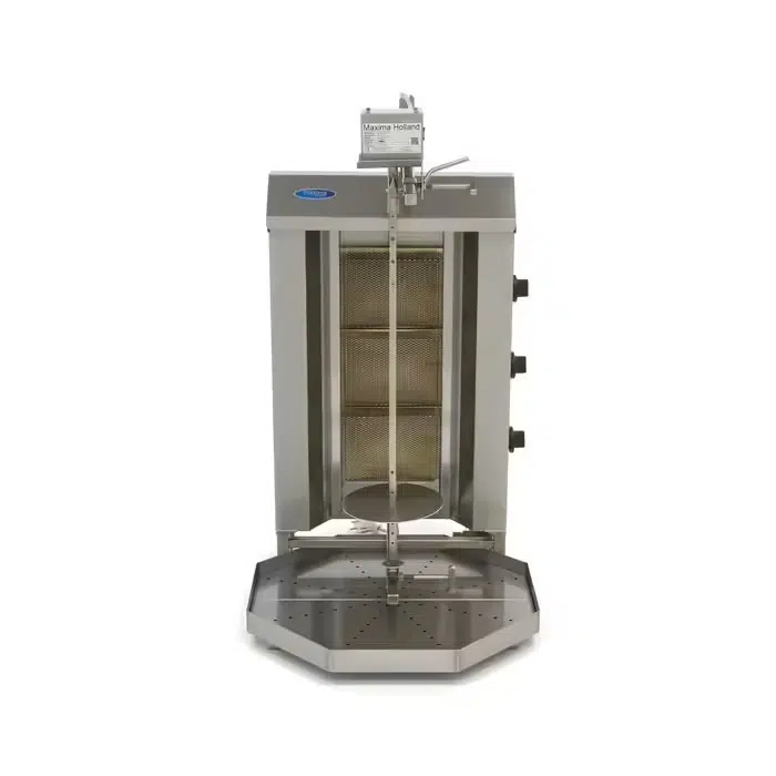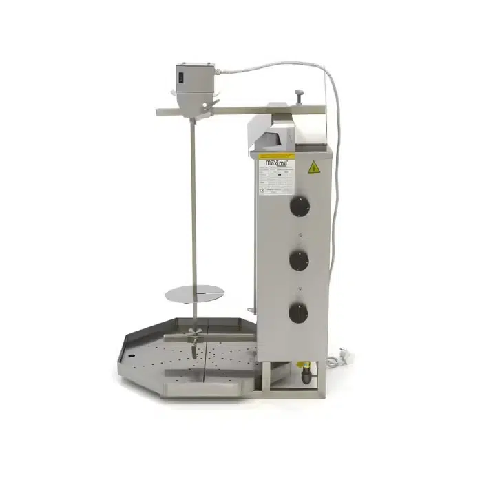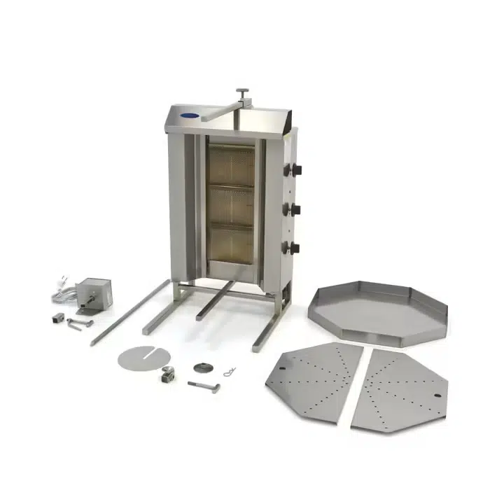 Professionaalse grilliga valmib maitsev döner / gyros / kebab / shaurma. Grillil on kolm gaasipõletit ja roostevabast terasest filtriga tilgaalus. Temperatuuri saab igal põletil eraldi seadistada.