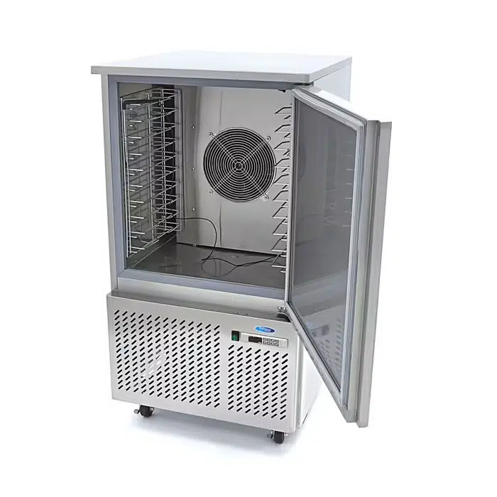 Kiirjahutuskappi sobib 10 x GN1/1 või 400 x 600 mm. Digitaalne temperatuudi regulaator, isesulguv uks antibakteriaalse kummitihendiga ja rattad.