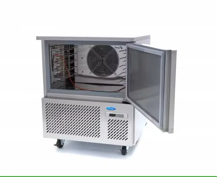 Kiirjahutuskappi sobib 5 x GN1/1 või 400 x 600 mm. Digitaalne temperatuudi regulaator, isesulguv uks antibakteriaalse kummitihendiga ja rattad.