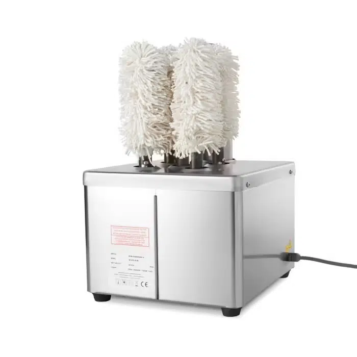 Professionaalne roostevabast terasest ja viie harjaga klaasi poleerimismasin poleerib 300 – 350 klaasi tunnis. Katlakivi jäägid ning veepiisad kaovad hetkega.