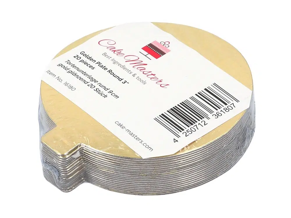 Kuldsed ümmargused 9 cm tordialused paksusega 1 mm (20 tk)