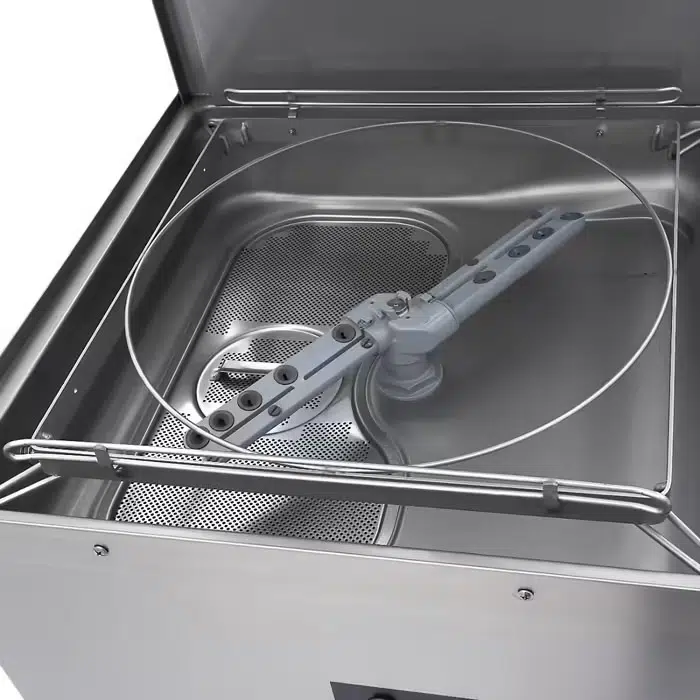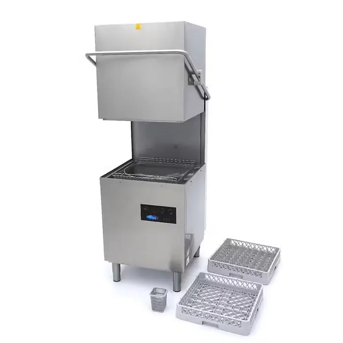Professionaalne roostevabast terasest kuppelnõudepesumasinal on kaks pesuprogrammi 90 või 180 sekundit. Ühe pesutsükli veekulu 2,8 liitrit. Masinal on veekindlad nupud, roostevabast terasest kang, reguleeritavad jalad, juurde- ja äravooluvoolik, klaasipesukorv, taldrikute pesukorv, söögiriistade tops. Sobib kasutamiseks nõudepesuliinis.