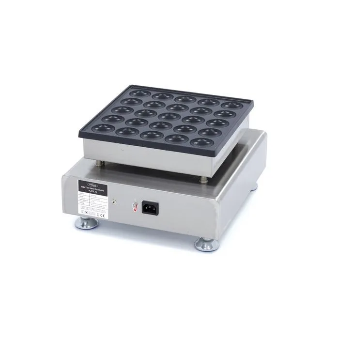 Maitsvate minipannkookide kiireks valmistamiseks pane see elektriline minipannkoogimasin oma kööki. Saate korraga valmistada kuni 25 minipannkooki ja tänu heale soojusjuhtivusele saate kiiresti need teha. See professionaalne minipannkoogivalmistaja sobib ideaalselt kasutamiseks kodukohvikutes, toiduautodes ning turgudel ja laatadel. Minipannkoogitegijal on alumiiniumist küpsetusplaat, millel on mittekleepuv kate, nii et pannkoogid tulevad plaadilt kergesti maha