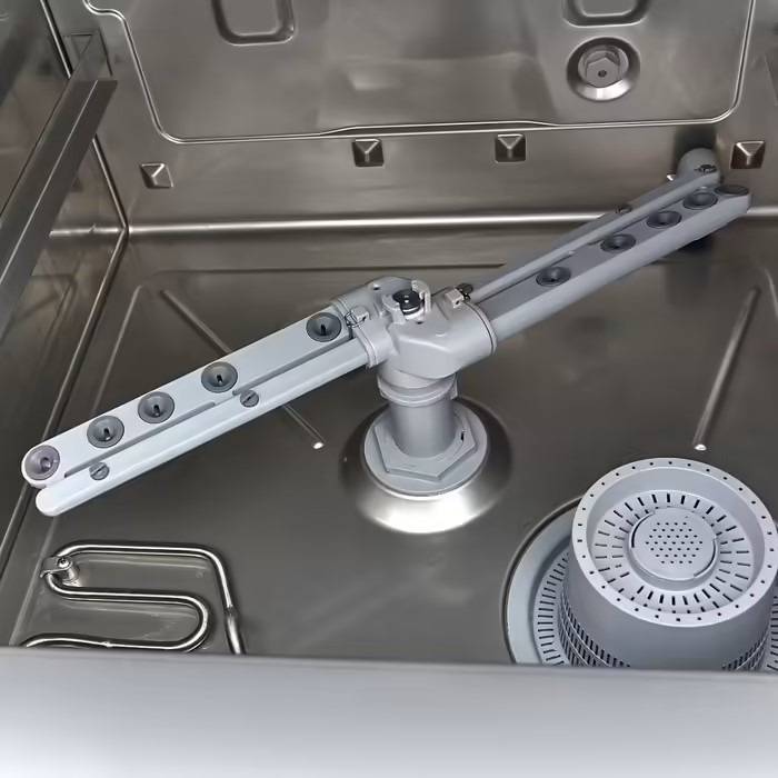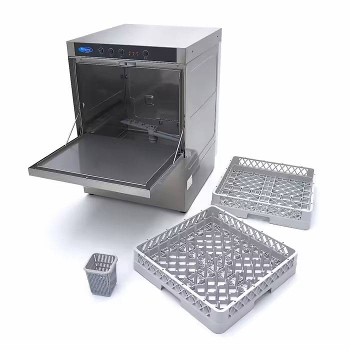 Professionaalne roostevabast terasest nõudepesumasin peseb klaasid ja väiksemad nõud puhtaks 100 või 190 sekundiga. Ühe pesutsükli veekulu 2,8 liitrit. Masinal on märgutuled, veekindlad nupud, käepide, juurde- ja äravooluvoolik, klaasipesukorv, taldrikukorv, söögiriistade tops ning pesuvahendi-, loputus- ja tühjenduspump.