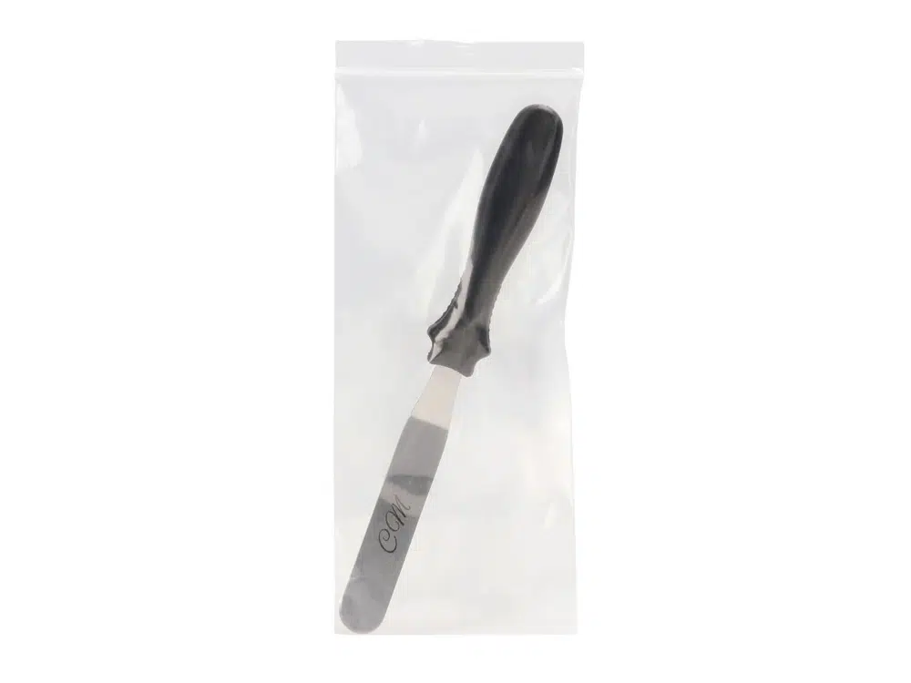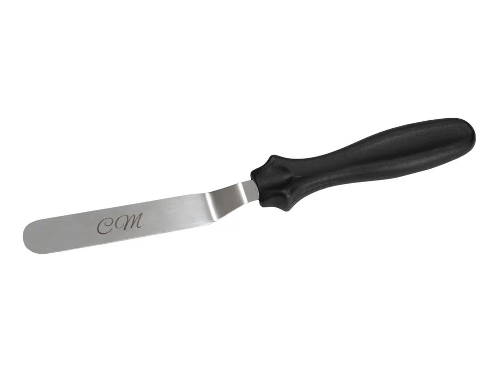 Roostevabast terasest professionaalne nurgaga spaatel/palettnuga. Tugev tera, mis võimaldab kreemide/masside tõhusat silumist.