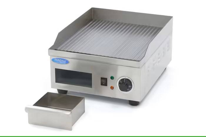 Grill maitsvate liha- ja kalaroogade valmistamiseks. Elektrigrillil on soonega plaat, pritsmete kaitseks kõrged ääred, rasvakogumis sahtel ja neli kummist jalga. Temperatuur reguleeritav vahemikus 50° kuni 300°C.
