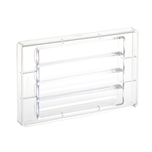 Polükarbonaadist vorm Chocolog sarja šokolaadinugati jaoks. Tulemuseks on paraja suurusega ümarate kujudega batoonid, mille sisse saab panna erinevaid täidiseid. Vormi mõõdud 275×175 mm, süvendi mõõdud 198x35x23 mm, 4 süvendit, ühe kommi kaal ca 150g