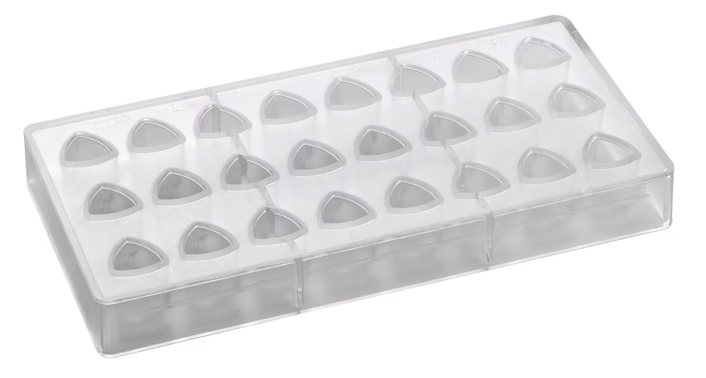 Innovaatiline šokolaadikommi vorm, originaalne ja geomeetrilise kujuga. Vormi mõõdud 275×135 mm, milles 24 süvendit mõõtudega 22x21x28 mm, ca 10 g.