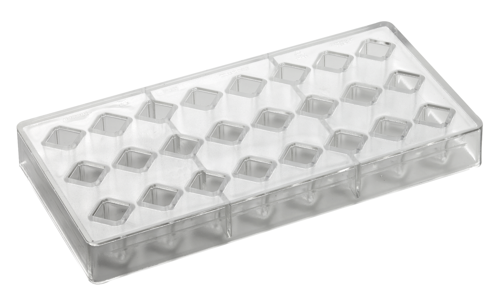 Innovaatiline šokolaadikommi vorm, originaalne ja geomeetrilise kujuga. Vormi mõõdud 275×135 mm, milles 24 süvendit mõõtudega 18x18x28 mm, ca 10 g.
