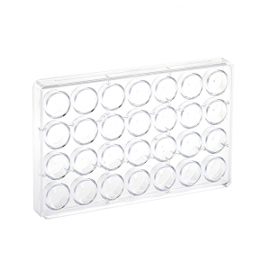 Polükarbonaadist šokolaadikommi vorm Prisma Square mõõtudega 275×175 mm. Vormis 28 kommisüvendit, iga kommi läbimõõt 30, kõrgus 15,5 mm, ca 11g.
