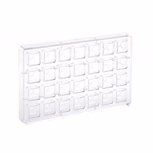Polükarbonaadist šokolaadikommi vorm Prisma Square mõõtudega 275×175 mm. Vormis 28 kommisüvendit, iga kommi mõõt 25×25, kõrgus 15,5 mm, ca 11g.
