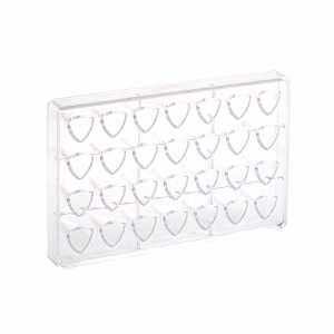 Geomeetrilised püramiidi kujuga polükarbonaadist šokolaadikommi vormid, vormi mõõdud 275×175 mm, süvendi mõõdud 25x26x55 mm, 28 süvendit, ühe kommi kaal ca 11g