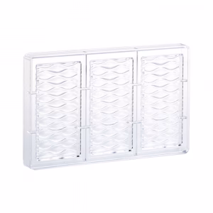 Polükarbonaadist šokolaaditahvlivorm Swing mõõtudega 275x175x25,5 mm. Vormil 3 süvendit, ühe süvendi mõõdud 142x68x10,5 mm, maht 100g