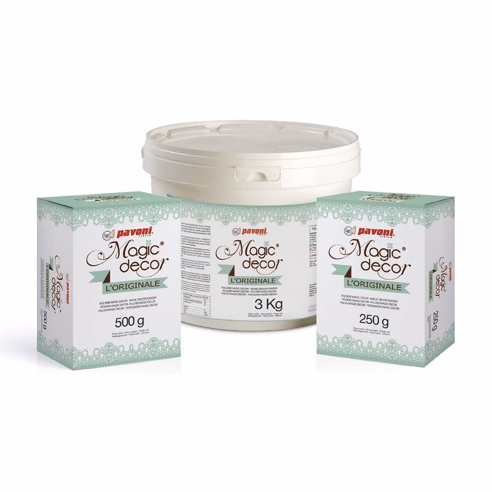 Magic Decor on pulbrisegu, millega saab valmistada kauneid söödavaid pitsmustreid tortidele minimaalsete oskustega. Valmistoode on elastne pits, millega saab kaunistada näiteks pulmatorte. Pakis 250 g pulbridegu.