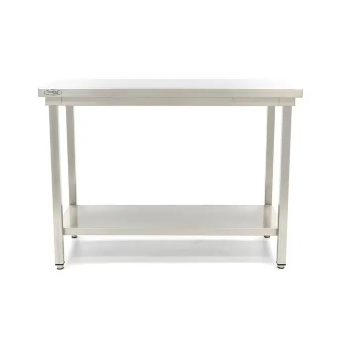 Roostevabast terasest töölaua kandevõime on 150 – 200 kg. Lisaks on laual riiul ja reguleeritavad jalad.