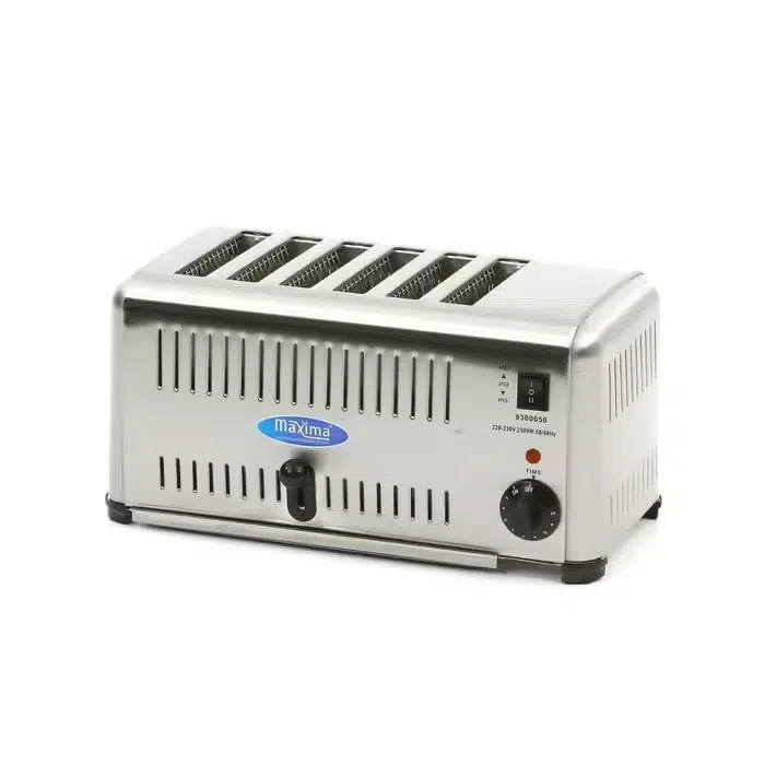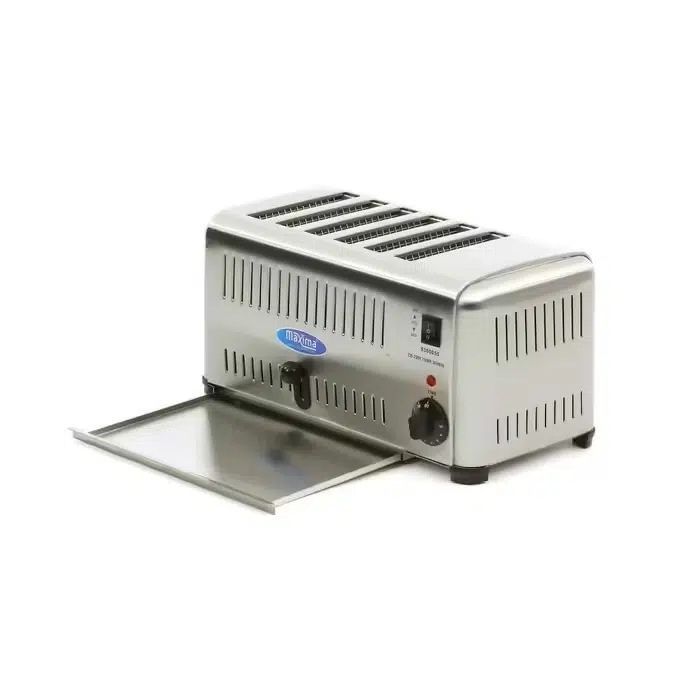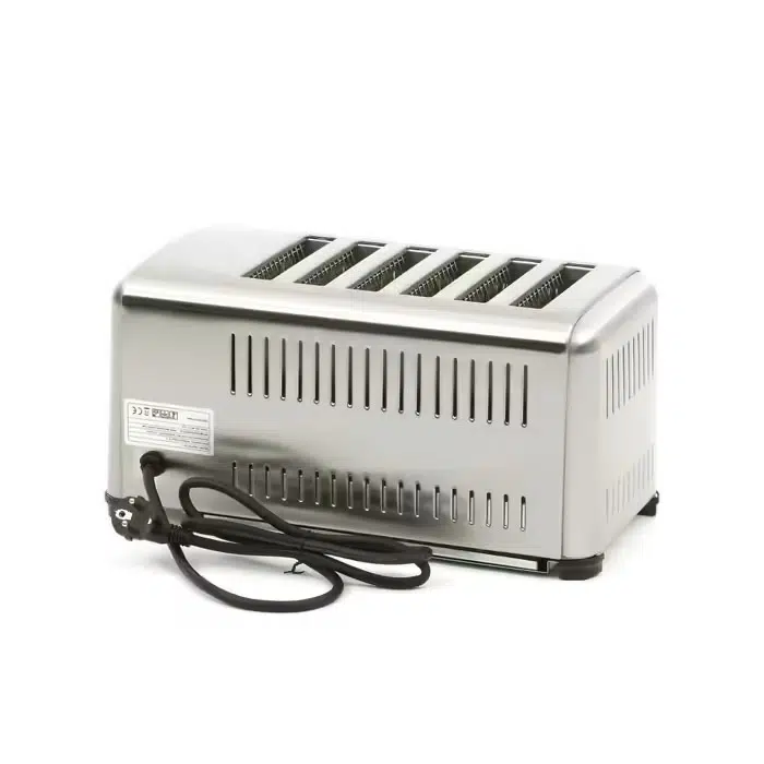 Professionaalne röster 6 viilu saia/leiva röstimiseks. Väljatõmmatav puru sahtel, tõstekang, eraldi saab kuumutada 2, 4 või 6 pesa, märgutuli, taimer ja neli kummist jalga.