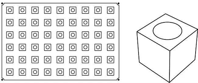 Silikoonvormi mõõdud 600×400 mm, süvendi mõõdud 30x30x30 mm, 54 süvendit, maht 25 ml