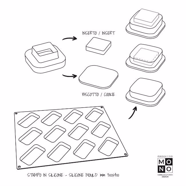 Tipptasemel silikoonvormid professionaalseks kasutamiseks. Mitmekülgne komplekt koosneb silikoonvormist 300×400 mm koos funktsionaalse lõikuriga küpsisepõhja ja täidise lõikamiseks.