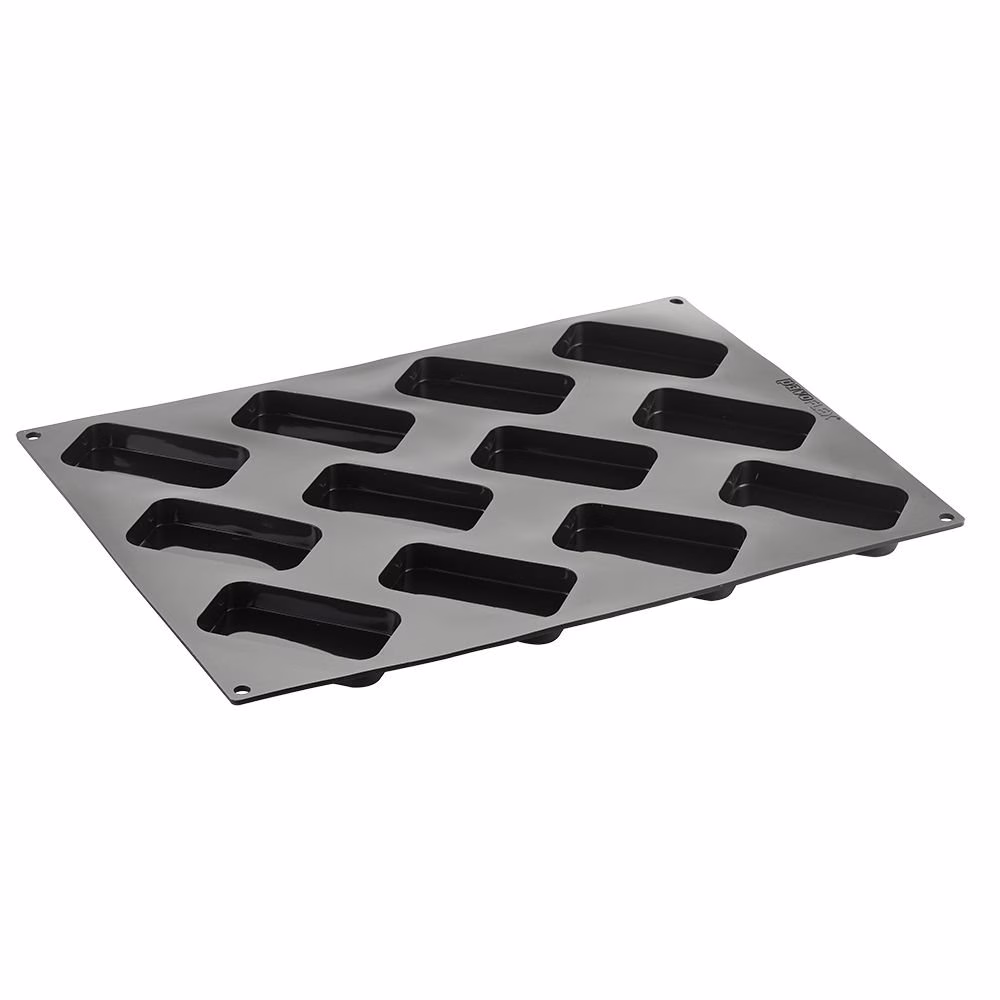 Silikoonvormi mõõdud 400×300 mm, süvendi mõõdud 92x50x15 mm, ühe süvendi maht 67 ml, 12 süvendit, komplektis lõikur mõõtudega 77×35 mm ja 117×75 mm