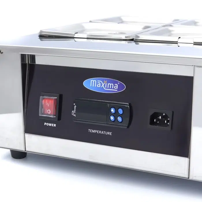 Roostevabast terasest šokolaadisulataja. Šokolaadi sulataja töötab veevanni meetodil, mis võimaldab šokolaadi aeglaselt sulatada ja vedeldada. Temperatuur on reguleeritav ühe kraadi kaupa, et sulatada šokolaad soovitud temperatuurile. Sulatajal on digitaalne ekraan, sisse/välja lüliti, kaks äravoolu ava (üks vee väljutamiseks, teine auru väljutamiseks kui vaja GN nõusid eemaldada) ja reguleeritav termostaat +3 °C kuni +412 °C.