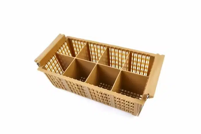 Söögiriistade korv sobib 50 x 50 cm nõudepesumasinasse. Korvil on sangad ja kaheksa lahtrit.