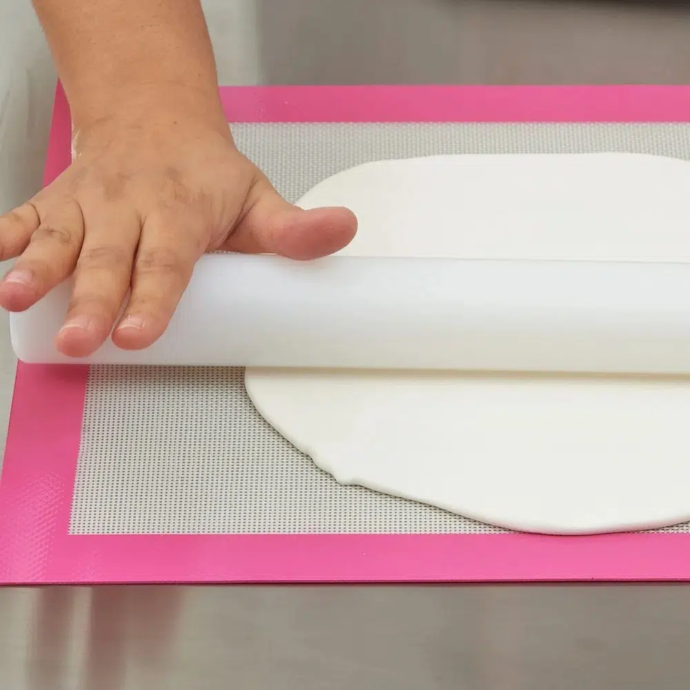 Polüetüleenist suhkrumassirulli abil saab hästi suhkrumassi, modelleerimisšokolaadi ja muretainast rullida.