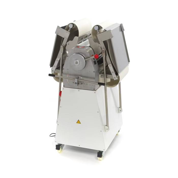 Professionaalse kokkupandava 38 cm pikkuse konveierlindiga taignarullijaga saate rullida suuri taignatükke. Masinal on käepidemed taigna liigutamiseks ja paksuse reguleerimiseks, taignasahtel, jahu konveier, ohutusnupp, ohutusvõre ja neli piduritega ratast.