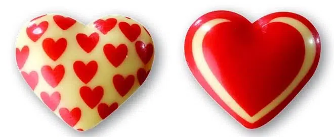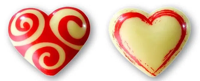 Termoplastikust südamekujulised šokolaadidekoori vormid.