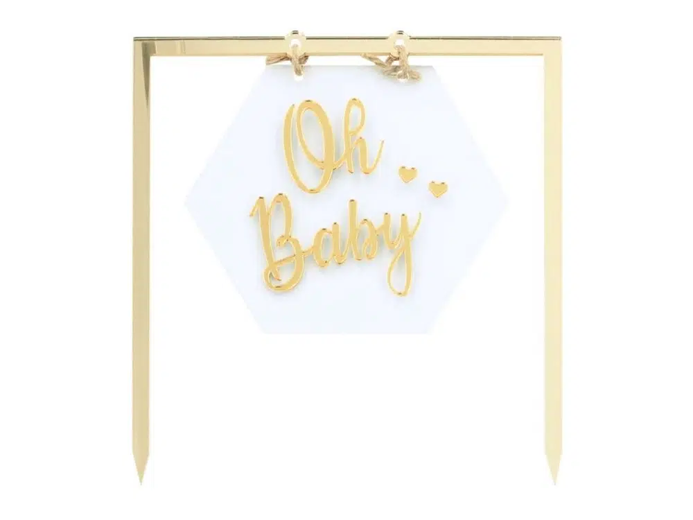 Plastikust koogikate. Läikiv kuldne kiri akrüülist kuusnurgal muudab tordi täiuslikuks.
