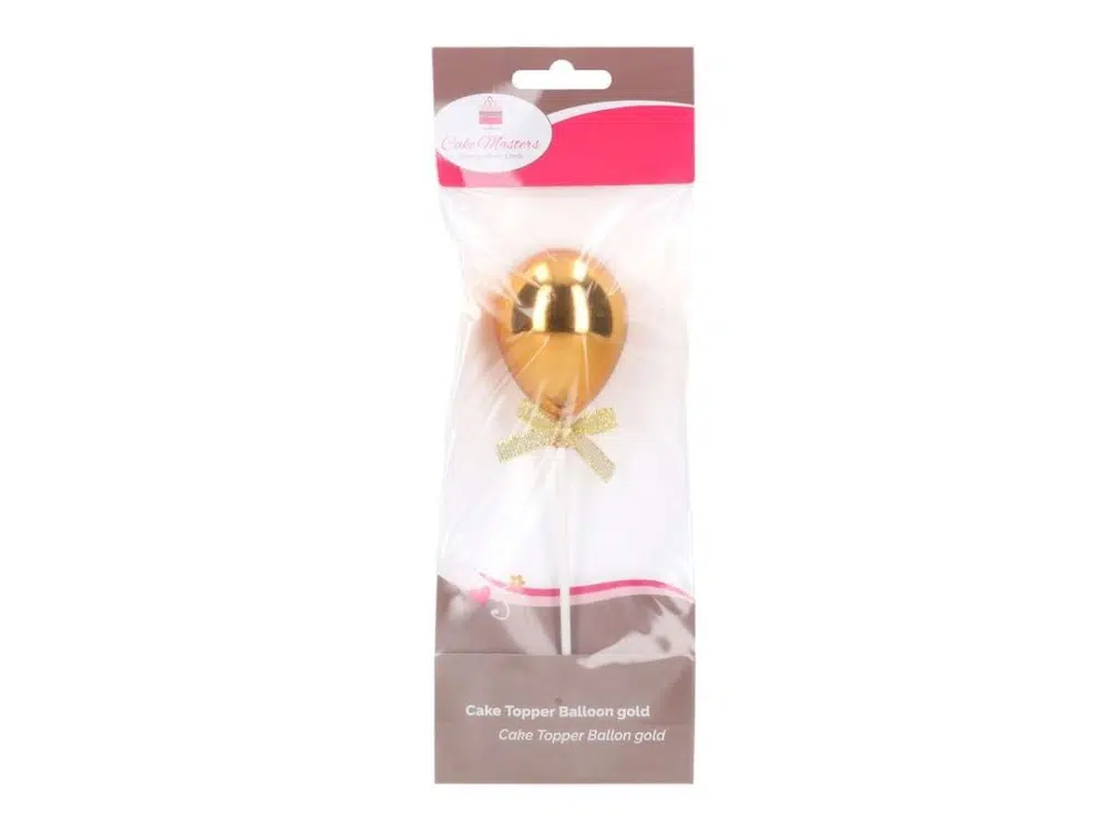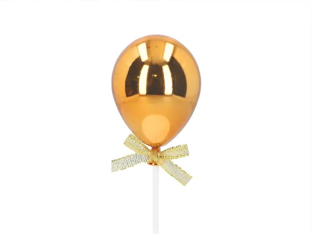 Plastikust tordikaunistus. Läikiv kuldne õhupall muudab tordi täiuslikuks.