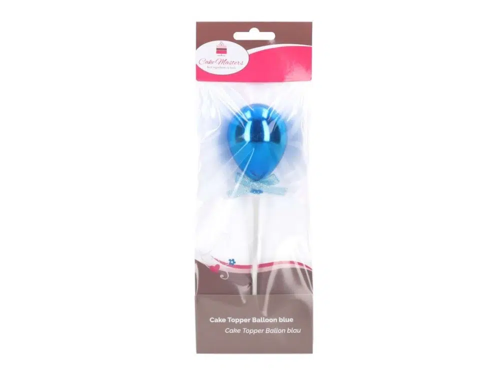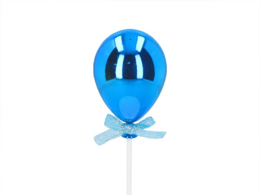Plastikust tordikaunistus. Läikiv sinine õhupall muudab tordi täiuslikuks.