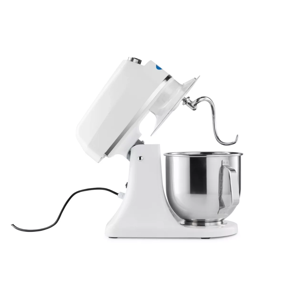 6,5-liitrise roostevabast terasest segamiskausi ja praktilise käepidemega mikser töötab vaikselt ja usaldusväärselt. Käiguosa on metallist hammasratastega. See sisaldab 11 erinevat kiirust (100 kuni 938 pööret minutis), nii et saate alati valida täpselt vajaliku kiiruse. Komplektis on roostevabast terasest vispel, taignakonks ja segisti.